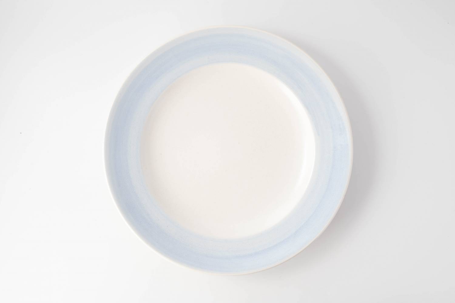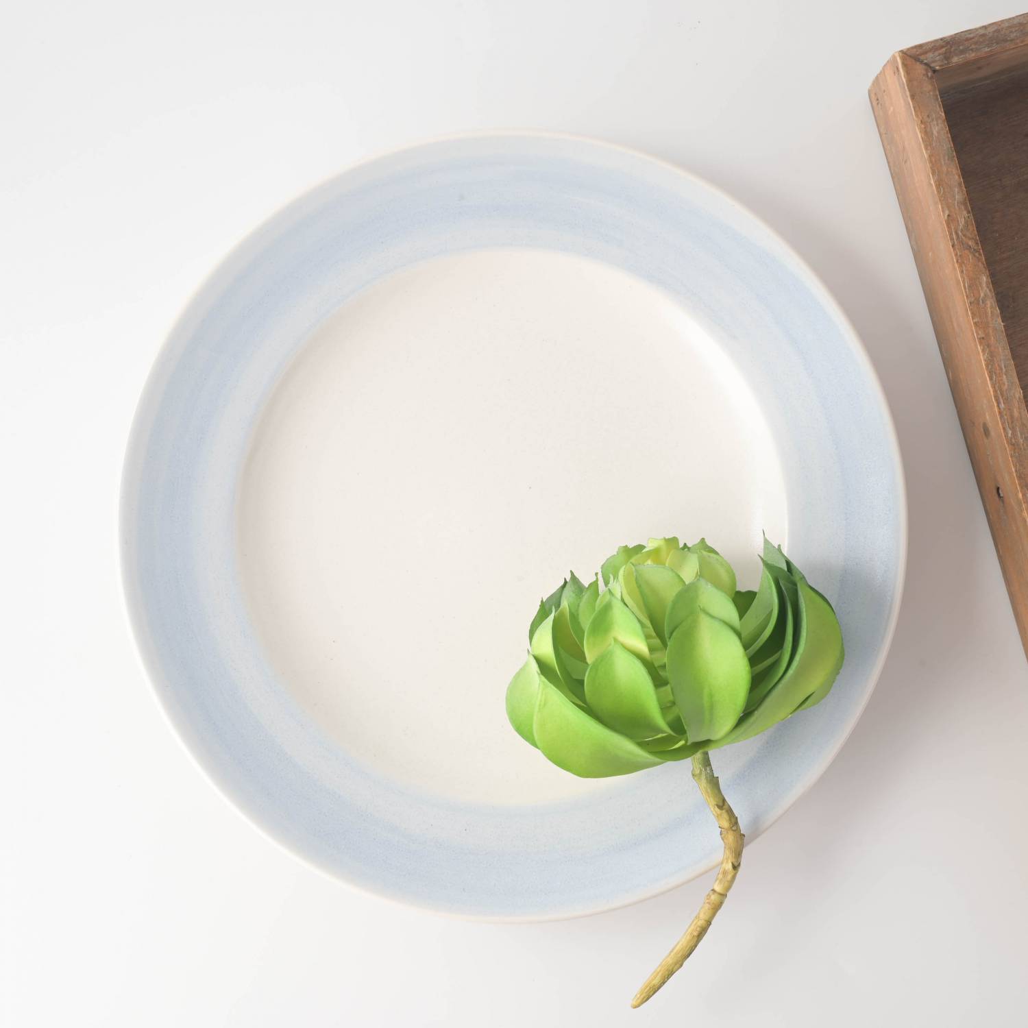 A large plate with a soft blue rim that adds a gentle touch to your table.