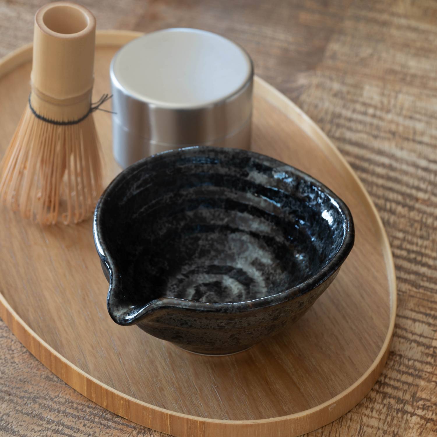 What makes this piece truly special is the glaze. It’s not just a flat, solid black. It features a delicate Uzumon (swirl pattern) design that gives it incredible depth and character.